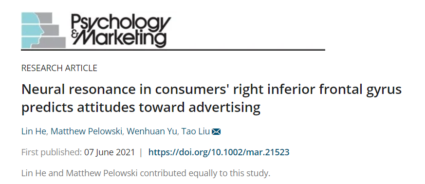 广告在商品经济中发挥重要作用,然而如何评价广告的有效性、广告如何影响消费决定、如何转化为实际的购买行为等问题仍待阐明。浙江大学刘涛教授课题组于2021年6月7日在Psychology & Marketing杂志在线发表论文《Neural resonance in consumers' right inferior frontal gyrus predicts attitudes toward advertising》,揭示在商业行为中消费者对广告反应的认知变化机制,该实验使用深圳英智科技有限公司便携式近红外系统(NIRx,NIRSport2)监测脑功能变化并完成主要实验数据采集工作。